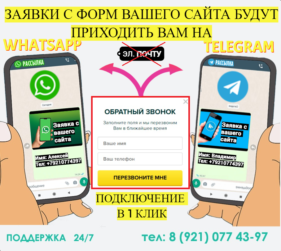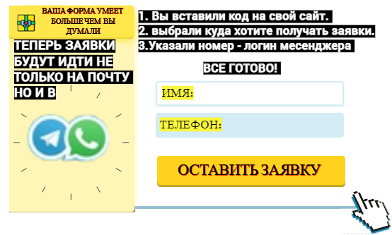 - Подключите в 1 клик специальный скрипт-бота для того , что бы все заявки оставленные в формах вашего сайта отправлялиись не только на вашу электронную почту но и на whatsapp - telegram